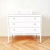 Die renommierte französische Marke Tartine et Chocolat hat sich mit Gustavienne und dem Designer Bo Ekström zusammengeschlossen, um eine neue Kindermöbelkollektion mit zeitlosem Charme zu entwerfen. Inspiriert von einem neu interpretierten Gustavianischen Stil verbindet diese Kollektion romantische Eleganz mit klaren Linien und fügt sich so perfekt in moderne Wohnräume ein. Ihre sanften Farbtöne und die raffinierte Ausstrahlung begeistern sowohl Kinder als auch Erwachsene. Die Gustavienne Kommode ist sowohl im Kinderzimmer als auch im Wohnbereich ein echter Blickfang. Mit ihren drei grosszügigen Schubladen bietet sie viel Platz für Kleidung und Wäsche. Die runden Griffe aus massivem Messing werden von Hand gefertigt und verleihen dem Möbelstück einen authentischen und edlen Charakter. In der reinen Tradition der Tischler des 17. Jahrhunderts gefertigt, besteht die Kommode aus massivem Birkenholz aus nachhaltig bewirtschafteten Wäldern Nordeuropas. Fein geschnitzte Details, wie die kleinen Holzperlen an der Vorderseite, sorgen für eine weiche und elegante Note und schaffen ein harmonisches Zusammenspiel aus Romantik und Moderne. Eine optional erhältliche Wickelauflage kann auf der Kommode befestigt werden und schafft so einen funktionalen und komfortablen Wickelplatz für Sie und Ihr Baby. Die Gustavienne Kommode ist in mehreren Farben erhältlich und lässt sich ideal mit den anderen Möbeln der Kollektion kombinieren, um ein elegantes und harmonisches Wohnambiente zu schaffen.
