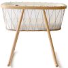 Die Wiege Kumi von Charlie Crane vereint Tradition und Moderne auf harmonische Weise. Ihre schlichte Form und die natuerliche seitliche Schaukelbewegung helfen Neugeborenen sanft beim Einschlafen, waehrend der moderne Akzent durch den transparenten Mesh Stoff und die grafischen Kreuzverschnuerungen aus Seil gesetzt wird. So fuehlen sich die Kleinsten in einem beruhigenden Kokon geborgen und behalten gleichzeitig den Blick auf ihre Umgebung. Bitte beachten Sie, dass die Baender beim Aufbau von den Eltern selbst eingefaedelt werden, ein symbolischer Moment, der es ermoeglicht, aktiv am Aufbau des ersten Nestes fuer das Baby teilzunehmen. Die Wiege wird mit einer Matratze aus natuerlicher Kokosfaser geliefert, und zusaetzliche Accessoires sind optional erhaeltlich, um das Set zu ergaenzen.