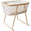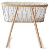 Die Wiege Kumi von Charlie Crane vereint auf harmonische Weise Tradition und Moderne. Ihre schlichte Form und die natuerliche seitliche Schaukelbewegung helfen Neugeborenen sanft beim Einschlafen, waehrend der moderne Akzent durch den transparenten Mesh Stoff und die grafischen Kreuzschnuerungen aus Seil gesetzt wird. So fuehlen sich die Kleinsten in einem beruhigenden Kokon geborgen und behalten gleichzeitig den Blick auf ihre Umgebung. Bitte beachten Sie, dass die Baender beim Aufbau von den Eltern selbst eingefaedelt werden, ein symbolischer Moment, der es ermoeglicht, aktiv am Aufbau des ersten Nestes fuer das Baby teilzunehmen. Die Wiege wird mit Matratze geliefert, und zusaetzliche Accessoires sind optional erhaeltlich, um das Set zu ergaenzen.