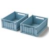 Big crush for these storage boxes from Liewood! They are sold by pack of 2 and come in several nice, modern colors. Among they numerous advantages, they are stackable, foldable, lightweight... They have some cutout handles and are made from durable and long-lasting material. They are delivered flat. Just perfect to tackle the chaos in any children’s room, bathroom or worktable!