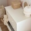 We love the Babushka collection by Wood Luck Design, with its romantic and delightfully vintage style! We adore its refined details and scalloped edge, which give it a uniquely charming touch. Made of MDF and beech wood, this dresser features three drawers equipped with a soft-close mechanism that protects little fingers. Just perfect for storing your little one’s clothes, accessories, and everyday essentials!