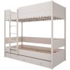We love the Babushka collection by Wood Luck Design, with its romantic and delightfully vintage style! We adore its refined details and scalloped edge, which give it a uniquely charming touch. Made of beech wood and MDF, this bunk bed is ideal for optimizing space in a shared children’s room or for hosting sleepovers. Practical and clever, it features a large drawer under the bed, perfect for organizing toys, bed linen, or your little one’s treasures. This drawer can also be converted into an extra bed (80 x 190 cm). Access to the upper bed is easy thanks to a straight, stable, and secure ladder. With a height of 182 cm, the upper bed is intended for children aged 6 and above. The bed comes with two flexible slatted bases, ensuring comfort and optimal support. Matching mattresses (90 x 200 cm) are available separately.