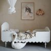 We love the Babushka collection by Wood Luck Design, with its romantic and delightfully vintage style! We adore its refined details and scalloped edge, which give it a uniquely charming touch. Made of beech wood and MDF, this 70 x 140 cm convertible cot features an adjustable mattress base with three height positions. As your baby grows, you can remove three slats on one side to allow your little one to get in and out of bed independently. Additional elements let you transform the cot into a junior bed by removing the four slatted sides. The bed comes with a flexible slatted base, ensuring comfort and optimal support. A matching mattress (70 x 140 cm) is available separately.