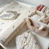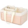 This diaper caddy is the ultimate storage solution to improve your changing table organization! It has a rectangular shape and is divided into several compartments, to sort and store properly the essential stuff for baby's change: diapers, muslins, cottons, care products... Much practical detail, it comes also with handles, that allow to carry it anywhere in the house super easily.