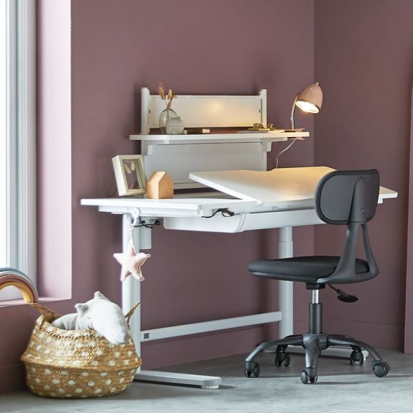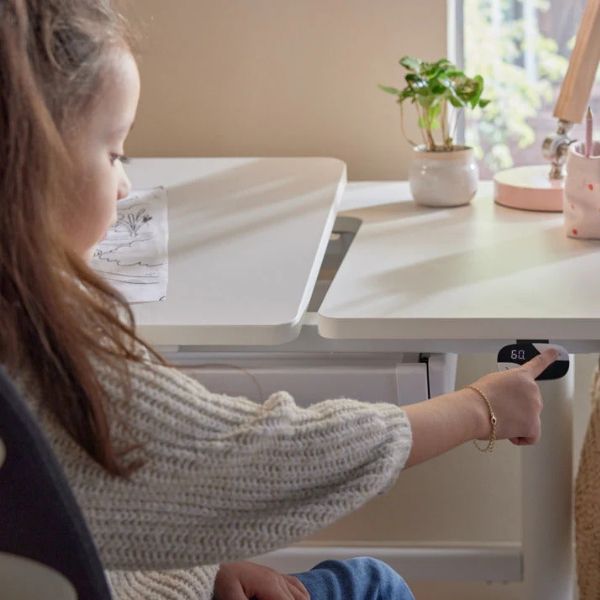 • Left or Right side of the desktop tilts: height adjustable from 55 to 89 cm via a discreet button under the desk