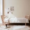 We’re in love with the Eli collection by KAS Kopenhagen! Designed by Danish designer Kasandra Bodo, this innovative and timeless Scandinavian collection charms with its clean lines, carefully crafted details, and warm aesthetic. Made from solid oak, the Eli single bed 90 x 200 cm combines elegance, durability, and functionality. The ergonomically designed headboards offer excellent comfort for leaning back, whether reading a story or relaxing with a tablet. Their shape even creates a subtle sofa-like illusion, perfect for quiet moments. The headboards can be removed, and the ends closed with additional parts, transforming the single bed into a daybed, ideal for evolving and versatile bedrooms. The tapered legs and invisible screws are hallmarks of KAS Kopenhagen’s aesthetic signature: a pure, authentic design created to stand the test of time. The bed comes with a slatted base. A mattress in the correct size (90 x 200 cm) is sold separately. A safety rail is available as an optional accessory.