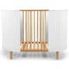 We love the Kai collection by KAS Kopenhagen! Designed by Danish designer Kasandra Bodo, this collection features a unique and timeless design inspired by Doric columns, an architectural element from ancient Greece representing one of the five orders of classical architecture. The 70 x 120 cm convertible baby crib is equipped with an adjustable slatted base with 2 height positions to adapt to your child's growth. Once your child grows, you can remove the side panels to transform the bed into a small bench for a smooth transition. With a conversion kit available as an option, the baby crib can be transformed into a 70 x 150 cm junior bed and used until the age of 6. A mattress with the appropriate dimensions is sold separately. Pair it with the rest of the Kai collection from the brand!