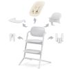 Here is the Cybex Lemo 4-in-1 high chair, designed for the whole family from 0 to 99 years! This complete set includes the Lemo 2 high chair with seat and footrest adjustable with just one hand, the Lemo bouncer, the baby set with meal tray, as well as a set of adapters. With its modern and timeless design, the Lemo 2 blends seamlessly into your home while adapting to your family’s needs as your child grows. From birth, the bouncer offers exceptional comfort and a gentle, natural rocking motion. Its adjustable backrest and removable, adjustable harness allow your baby to be positioned safely and comfortably. Once your child can sit independently (from around 6 months up to 3 years, max. 15 kg), the baby set with tray becomes the perfect ally for mealtime. Built to last, the chair can be adjusted in both height and depth using just one hand, without tools or dismantling. A simple, reliable and evolving solution that supports your family every day!