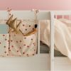 This lovely bed pocket from Dear April is extremely handy for keeping cuddly toys, pacifiers, water bottles, or a small book within easy reach... Everything essential for baby! It can also be used for a larger child's bed, or placed near the changing area to store diapers, cloths, or products. It ties easily with its small ribbons, allowing you to use it wherever you find it most useful!
