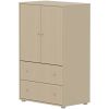 A favorite from Flexa's Saga storage collection, inspired by the unspoiled nature of Denmark's west coast! Made of MDF, this wardrobe features two doors and two drawers with a soft-close mechanism to protect little fingers. Inside, an adjustable shelf allows you to adapt the storage space to your needs. The matching round handles add a simple and refined design touch. We love its elegant grooves, which give the wardrobe character, depth, and a touch of authenticity. Perfect to combine with the rest of the Saga collection!