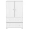 A favorite from Flexa's Saga storage collection, inspired by the unspoiled nature of Denmark's west coast! Made of MDF, this wardrobe features two doors and two drawers with a soft-close mechanism to protect little fingers. Inside, an adjustable shelf allows you to adapt the storage space to your needs. The contrasting round handles add a simple and refined design touch. We love its elegant grooves, which give the wardrobe character, depth, and a touch of authenticity. Perfect to combine with the rest of the Saga collection!