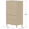 A favorite from Flexa's Saga storage collection, inspired by the unspoiled nature of Denmark's west coast! Made of MDF, this wardrobe features two doors and two drawers with a soft-close mechanism to protect little fingers. Inside, an adjustable shelf allows you to adapt the storage space to your needs. The round oak handles and legs add a simple and refined design touch. We love its elegant grooves, which give the wardrobe character, depth, and a touch of authenticity. Perfect to combine with the rest of the Saga collection!