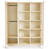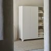 Elegant and timeless, the Tsugi collection by Quax brings a soft, soothing, and charming atmosphere to the nursery. Made from solid wood and MDF, it stands out with its clean lines, delicate monochrome tones, and airy design enhanced by a subtle touch of whimsy. With its two large doors featuring invisible handles, the Tsugi XL wardrobe includes two hanging rails for clothes and six removable shelves. Combine it with the other pieces from the Tsugi collection for a harmonious and elegant look!