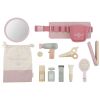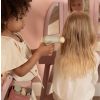 • Includes a pair of scissors, a hairdryer, a straightener, a hair clipper, a brush, shampoo, hairspray and a mirror.