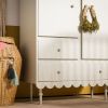 On craque pour la collection Babushka de Wood Luck Design, au design romantique et délicieusement vintage ! On adore ses détails raffinés et son rebord ondulé, qui lui confèrent une touche de charme unique. Aussi jolie que pratique, cette armoire dispose de deux tiroirs et de deux tringles pouvant être installées à gauche ou à droite selon vos besoins. Elle comprend également des étagères mobiles de chaque côté, offrant une grande flexibilité de rangement. Les portes et les tiroirs sont équipés d'un mécanisme Soft-close, qui protège les petits doigts. Juste parfaite pour ranger les vêtements, accessoires et essentiels de vos minis !