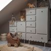 On craque pour la collection Babushka de Wood Luck Design, au design romantique et délicieusement vintage ! On adore ses détails raffinés et son rebord ondulé, qui lui confèrent une touche de charme unique. Aussi jolie que pratique, cette armoire basse dispose de cinq tiroirs et d’un placard avec trois étagères intérieures. Les portes et les tiroirs sont équipés d'un mécanisme Soft-close, qui protège les petits doigts. Juste parfaite pour ranger les vêtements, accessoires et essentiels de vos minis !