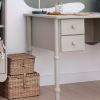 On craque pour la collection Babushka de Wood Luck Design, au design romantique et délicieusement vintage ! On adore ses détails raffinés, qui lui confèrent une touche de charme unique. Fabriqué en MDF et bois de hêtre, ce bureau est doté de quatre tiroirs de rangement pour ranger facilement livres, cahiers et stylos. Les tiroirs sont équipés d'un mécanisme Soft-close, qui protège les petits doigts. Il offre une belle surface de travail et avec sa hauteur de 75 cm, sera parfait pour un enfant dès 7 ans.