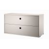 Configurez vous-même votre étagère grâce au système entièrement modulable String Furniture et à son outil de planification disponible ici ! Ce caisson à 2 tiroirs est disponible en 2 longueurs (58 et 78 cm) et plusieurs coloris. Il est compatible avec les montants String Furniture de 30 cm de profondeur :