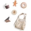 Les petits sacs d’aliments Sebra sont l’accessoire idéal pour préparer de délicieux goûters et repas ! Cet assortiment comprend 5 gourmandises : un donut, un cupcake, un biscuit au chocolat, une part de gâteau et un bonhomme en pain d’épices, le tout soigneusement rangé dans un charmant sac en crochet d’inspiration française.
