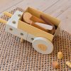 • Contient 22 pièces : 3 blocs, 14 chevilles, 4 roues en mousse, 1 boîte.