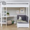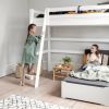 Voici un lit mezzanine Hoppekids avec bureau et canapé intégré, parfait pour une chambre d’ado ! L’espace inférieur est astucieusement pensé avec un large plateau qui crée un coin bureau pratique et fonctionnel, parfait pour travailler ou étudier confortablement, tandis que le module canapé se déploie facilement pour offrir un couchage d’appoint. Évolutif et polyvalent, le module mezzanine est amovible : le lit peut ainsi se transformer en lit banquette, puis évoluer en lit mi-hauteur, lit mi-hauteur avec toboggan, lit à baldaquin, lit superposé ou lit cabane grâce aux kits de conversion disponibles séparément. Fabriqué en pin massif et certifié Nordic Swan, ce lit allie sécurité, durabilité et respect de l’environnement. Sa finition est réalisée avec une laque à base d’eau, sans substances nocives ni produits chimiques superflus. L’échelle peut être positionnée à droite ou à gauche pour s’adapter à toutes les configurations de chambre. Le lit est livré avec un sommier et un matelas aux dimensions adaptées (90 x 200 cm) est disponible séparément. Pour le canapé, il est nécessaire d'utiliser le matelas en 5 parties de la marque.