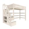 Le lit mezzanine haut de Lifetime Kidsroom est idéal pour une chambre d'enfant ou d'adolescent. Avec son design simple et épuré, il convient à tous styles d'intérieur. Les escaliers offrent un espace de rangement supplémentaire, parfaits pour gagner de la place. La partie inférieure du lit peut s'aménager en un coin cosy, en espace de travail ou elle peut être complétée par des espaces de rangement personnalisables. Fabriqué en bois de pin, le lit est livré avec un sommier à 16 lattes standard. Une barrière de sécurité peut être ajoutée. Les escaliers peuvent être placés à droite ou à gauche du lit. Un matelas aux dimensions adaptées est disponible séparément.