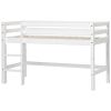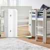 Le lit mi-hauteur évolutif Eco Dream imaginé par Hoppekids saura s'intégrer facilement dans toutes les chambres d'enfant ! Avec ses 105 cm de hauteur, il permet aux plus jeunes de grimper seuls dans leur lit en toute sécurité. L’espace libéré sous le couchage se transforme en véritable terrain d’aventures : cabane, coin lecture ou espace de jeu créatif… à chacun son imagination. On y accède par une échelle droite qui peut être installée à gauche ou à droite. Évolutif, il peut être transformé en un lit superposé, un lit cabane ou un lit mezzanine grâce aux kits de conversion disponibles séparément. Fabriqué en bois de pin massif, il est décliné dans plusieurs dimensions (70 x 160 cm, 70 x 190 cm et 90 x 200 cm). Le lit est certifié Nordic Swan, gage de sécurité, de durabilité et de respect de l’environnement. La finition du lit est réalisée avec une laque à base d’eau, sans substances nocives ni produits chimiques superflus. Des accessoires textiles (rideaux, tissus cabanes) sont disponibles en option. Le lit est livré avec un sommier et un matelas aux dimensions adaptées (70 x 160 cm) est vendu séparément.