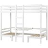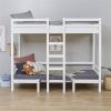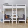 Le lit superposé Eco Dream Jumbo imaginé par Hoppekids est une solution astucieuse et polyvalente pour la chambre d’enfant ! Avec ses deux couchages en 90 x 200 cm, ce lit est idéal pour optimiser l’espace dans une petite chambre ou pour accueillir les copains/copines lors des soirées pyjama. Le couchage supérieur est équipé d’une barrière de sécurité sur toute la largeur, créant un environnement sûr et rassurant. L’échelle, placée au centre, permet un accès facile et sert également de support à la table intégrée. Le couchage inférieur se transforme en un véritable espace modulable et convivial : deux bancs et une grande table complètent l’ensemble, parfaits pour lire, dessiner, jouer ou partager un goûter. Astucieux, les éléments qui forment la table et les deux bancs servent également de base au couchage inférieur, pour un mobilier aussi fonctionnel que ludique. Fabriqué en bois de pin massif, il est certifié Nordic Swan, gage de sécurité, de durabilité et de respect de l’environnement. La finition du lit est réalisée avec une laque à base d’eau, sans substances nocives ni produits chimiques superflus. Le lit est livré avec un sommier et une table. Un matelas aux dimensions adaptées (90 x 200 cm) est disponible séparément. Pour le couchage inférieur, il est nécessaire d'utiliser le matelas en 4 parties de la marque.