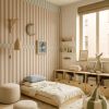 • Le motif répétitif, identique sur chaque lé, permet un raccord impeccable une fois le papier posé depuis le plafond.