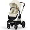 La poussette 2-en-1 naissance et 2e âge Eos Lux est pensée pour accompagner votre enfant dès ses premiers jours jusqu’à environ 4 ans. Parfaitement adaptée au quotidien des familles, elle évolue au rythme de la croissance de votre bébé. Dès la naissance, utilisez-la en configuration nacelle : équipée d’un matelas ergonomique et confortable ainsi que d’un fond rigide, elle garantit un soutien optimal du dos, de la nuque et de la tête de votre nouveau-né. Homologuée jusqu’à 9 kg (environ 6 mois), la nacelle peut également être posée au sol lorsque vous rentrez à la maison, sans réveiller votre bébé. Lorsque votre enfant est suffisamment grand pour se tenir assis, la poussette se transforme facilement en siège confortable en modifiant simplement quelques éléments textiles sur le châssis : inutile d’acheter des accessoires supplémentaires ! L’assise inclinable peut être installée face à vous ou face au monde, pour s’adapter à ses envies et à vos préférences, et s’utilise jusqu’à 22 kg. Grâce au travel system, passez aisément de la voiture à la poussette en fixant une coque auto bébé Cybex sur le châssis. La Eos Lux a également été conçue pour s’adapter à tous les terrains grâce à ses roues tout-terrain et à la suspension sur les roues avant, assurant des sorties fluides et confortables, même sur surfaces accidentées. Une protection pluie et des adaptateurs de siège auto sont vendus séparément.