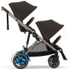 • Capote pare-soleil réglable : réglez la capote pare-soleil rapidement de trois différentes façons pour convenir à votre enfant à mesure qu’il grandit. Lorsque la poussette est utilisée en mode fratrie, cette fonction vous permet également d’installer confortablement un lit d’enfant, une unité de siège ou un siège auto pour bébé supplémentaire.