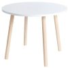 • Fabriquée en MDF laqué (plateau) et en bois massif (pieds).