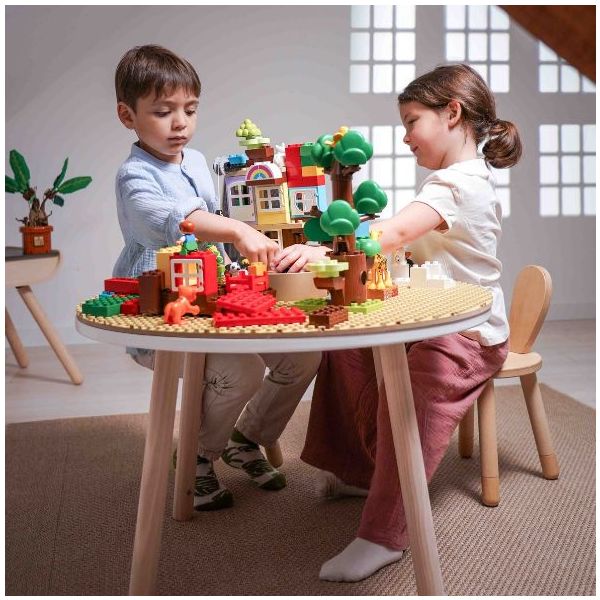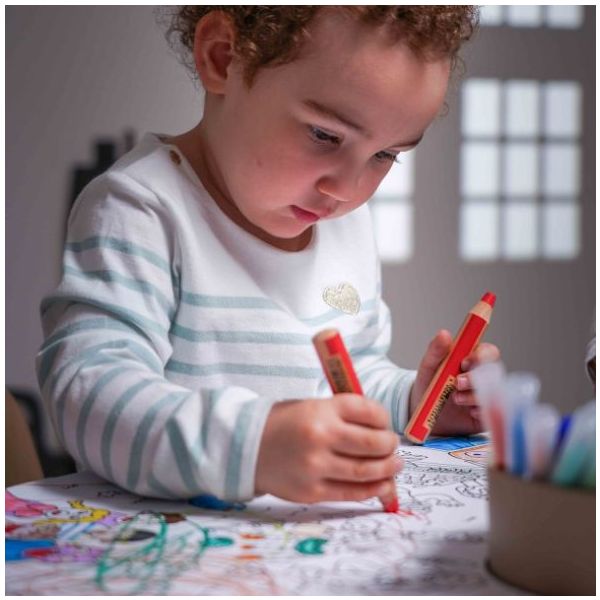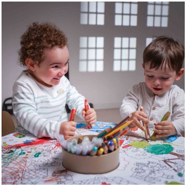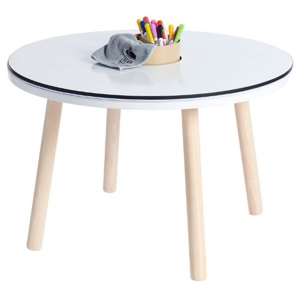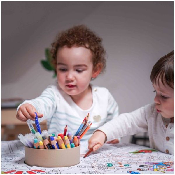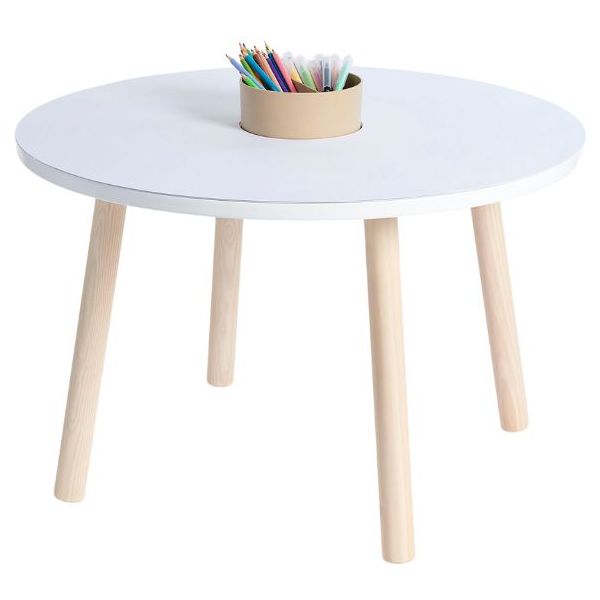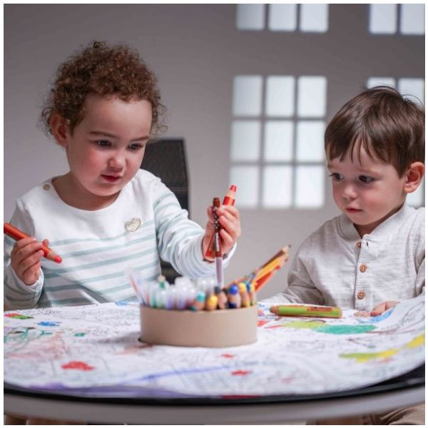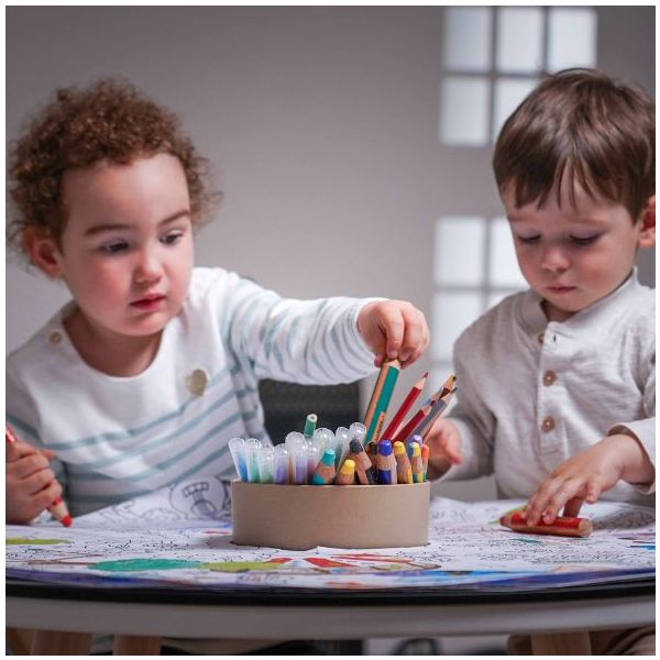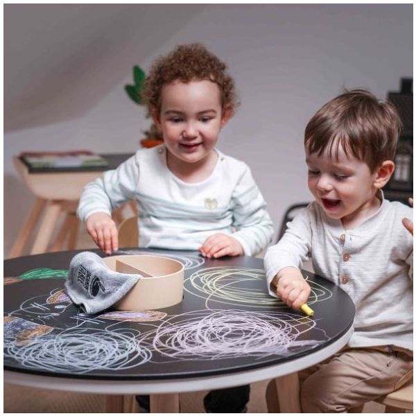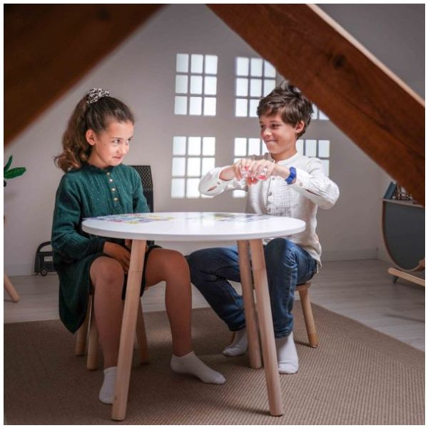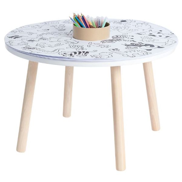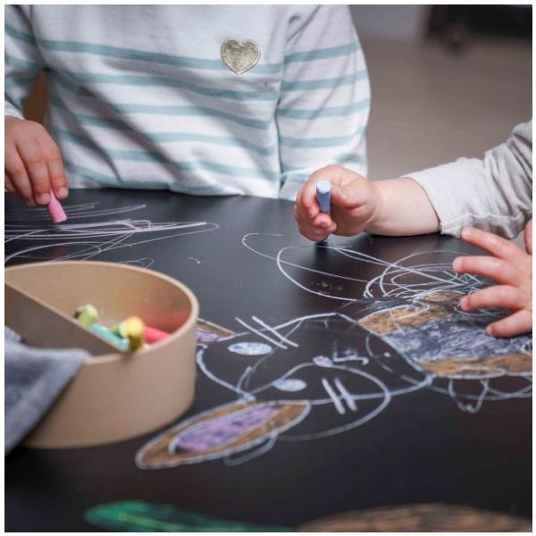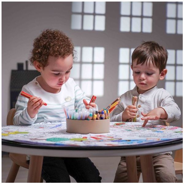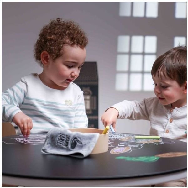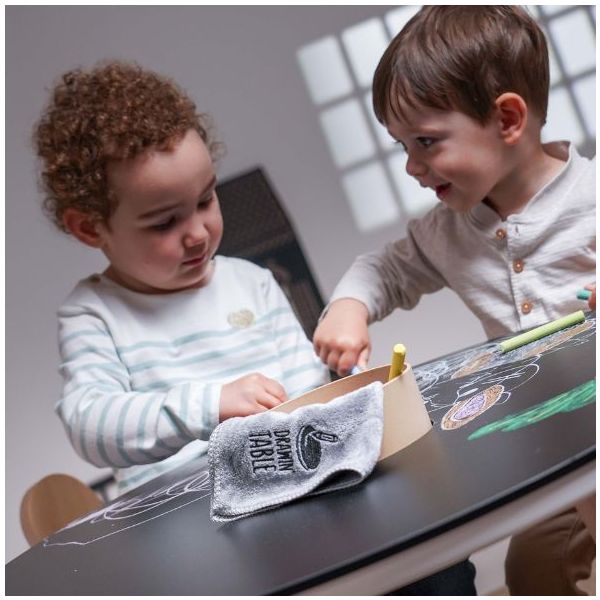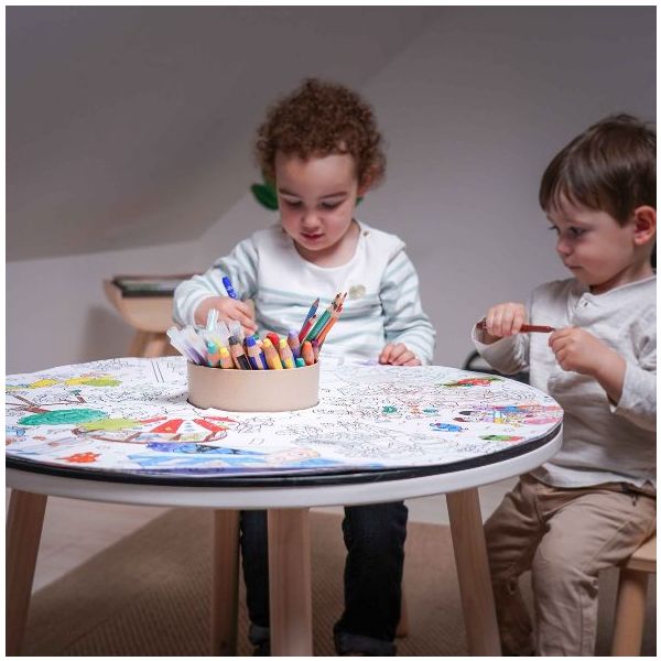 Cette table de coloriage évolutive pour enfant est aussi jolie que ludique ! Elle est équipée de feuilles de dessin qui s'ajustent parfaitement à sa forme : une fois qu'une feuille de dessin est complétée, il suffit de la retirer pour la remplacer par une nouvelle, et hop le tour est joué ! Des recharges de feuilles blanches ou illustrées sont disponibles séparément, ainsi que des plateaux de dessin et de jeu. Un pot à crayon est intégré pour ranger tous les accessoires nécessaires aux petits artistes (craies, crayons, feutres). Fabriquée en contreplaqué de bouleau et au design scandinave minimaliste, elle est spécialement conçue à hauteur d’enfant (46 cm) pour pouvoir dessiner et jouer confortablement. Évolutive, la table est livrée avec un set de 4 rallonges de pieds permettant de la surélever jusqu’à 56 cm de hauteur et de l’utiliser confortablement jusqu’à l’âge de 10 ans. La table Imagin'table® peut accueillir jusqu'à 4 enfants. À compléter par le petit tabouret ou la chaise lapin !