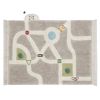 On adore ce joli tapis enfant 120 x 170 cm livré avec accessoires ! Un tapis circuit qui comprend des arbres, des panneaux, des vélos et des voitures en tissu, livrés dans un petit sac. Ultra ludique ! Les tapis Lorena Canals sont fabriqués à la main, avec des teintures naturelles. Ils sont 100% coton et peuvent être lavés en machine à la maison... Pratique !
