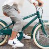 Voici un superbe vélo d'apprentissage au style délicieusement rétro ! Après l'incontournable draisienne, Banwood nous enchante avec ce vélo équipé de roulettes d'entrainement amovibles en PVC qui permettront aux plus petits de prendre confiance en eux avant de se lancer dans le grand bain. Un vélo qui allie style - on adore le panier en osier amovible pour transporter les petites affaires, les détails en simili-cuir de la selle et des poignées ainsi que les pédales en bois - et sécurité : le vélo est équipé de freins à étriers, d'un plateau à vitesses, d'une béquille, de réflecteurs arrières et sur les pédales, d'une sonnette et d'un garde-boue. La selle et le guidon sont réglables en hauteur.