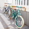 • Cadre en alliage léger. Poignées et selle en simili-cuir. Pédales en pallisandre. Panier amovible en osier.
